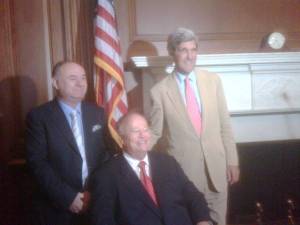 Në prani të një grupi të zgjeruar të senatorëve, kongresmenëve, anëtarëve të kabinetit “Obama”, senatori Xhon Kerri ka pritur botuesin Fahri Balliu, në nder të të cilit ai ka ngritur në Capitol Hill flamurin amerikan.