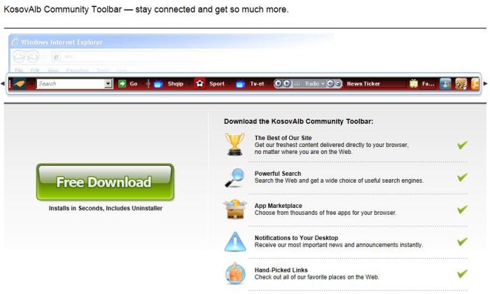 Kosovalb Toolbar Published 12 Tetor, 2012 at 990 × 594 in KosovAlb ka fillue me Toolbarin e Vet: ‹ Return to post Lini një koment Δ
