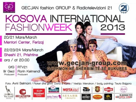 Kosova international fashion week 2013 do të mbahet më 20 dhe 21 mars në qendrën më të madhe tregtare në Ferizaj, Mentori Center, për të vazhduar me datë 22/23 dhe 24 mars në Sheshin 21 në Prishtinë, nga ora 20