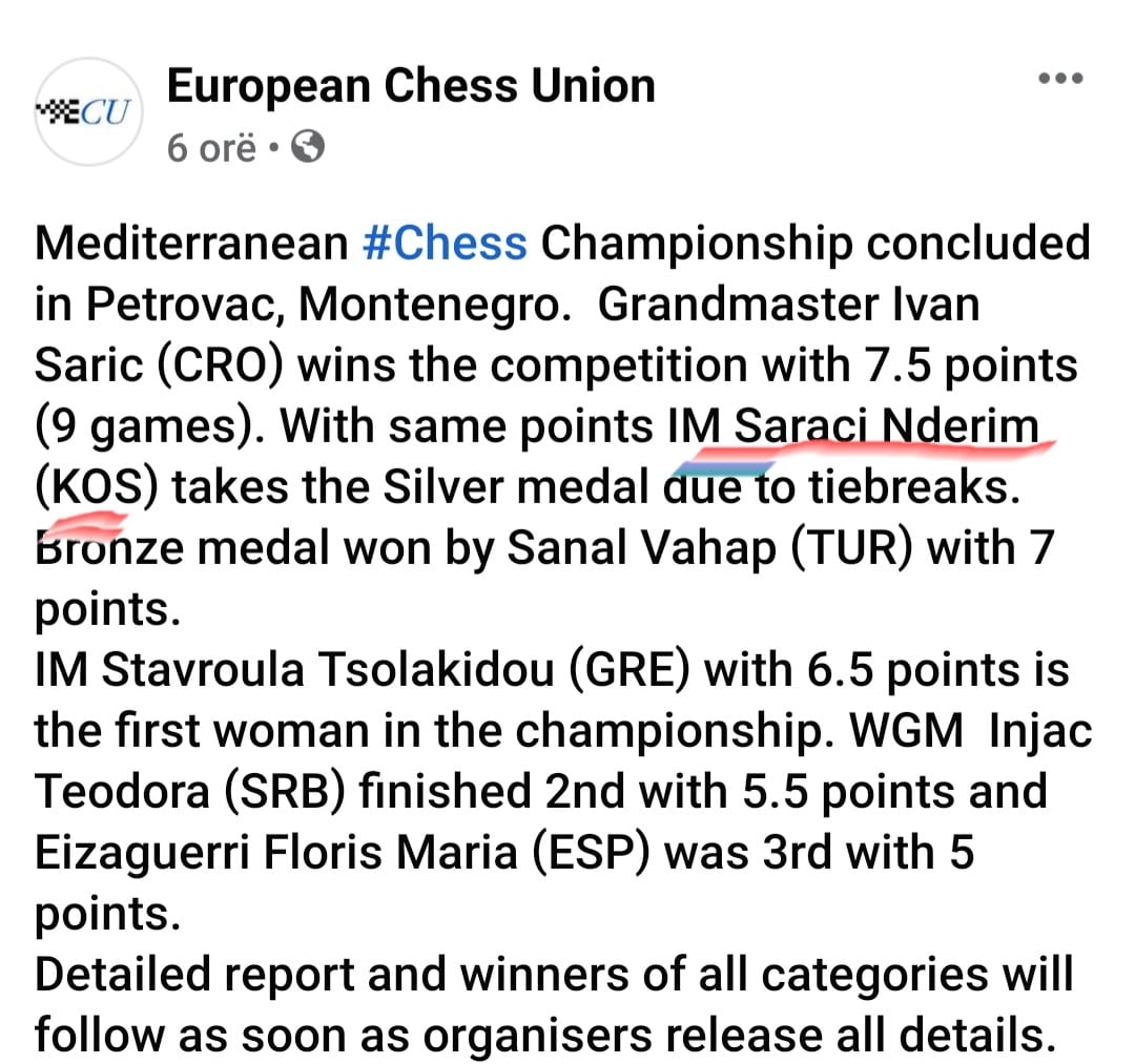 Për kët sukses,Komiteti Olimpik i Kosovës përgëzoi Saraçin dhe Federatën e Shahut të Kosovës.